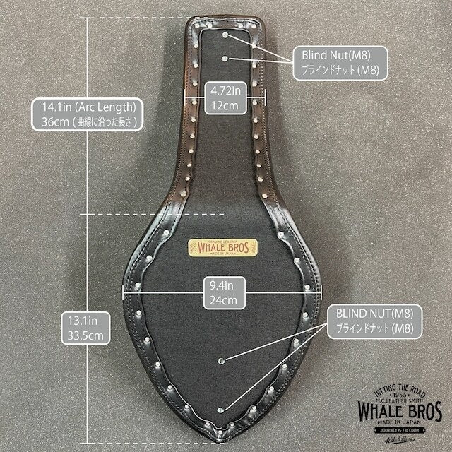 シートベースは鉄板使用し、フェンダーのラインに合わせてある程度曲げることが出来ますので、ご自身のチョッパーにベストなバランスでのお取り付けが可能です。