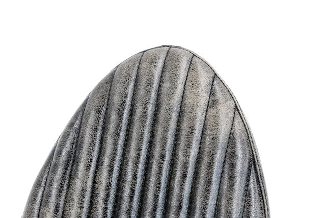 タックロールの幅と凹凸感、ステッチのピッチと番手は完璧なバランスで仕立てており、シンプルながらも立体感があります。前側(タンク側)に行くほど側面がテーパーになっており、上品な印象を与えるデザインです。