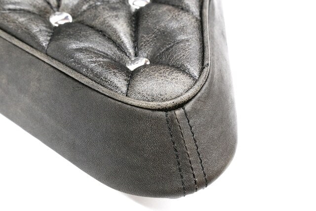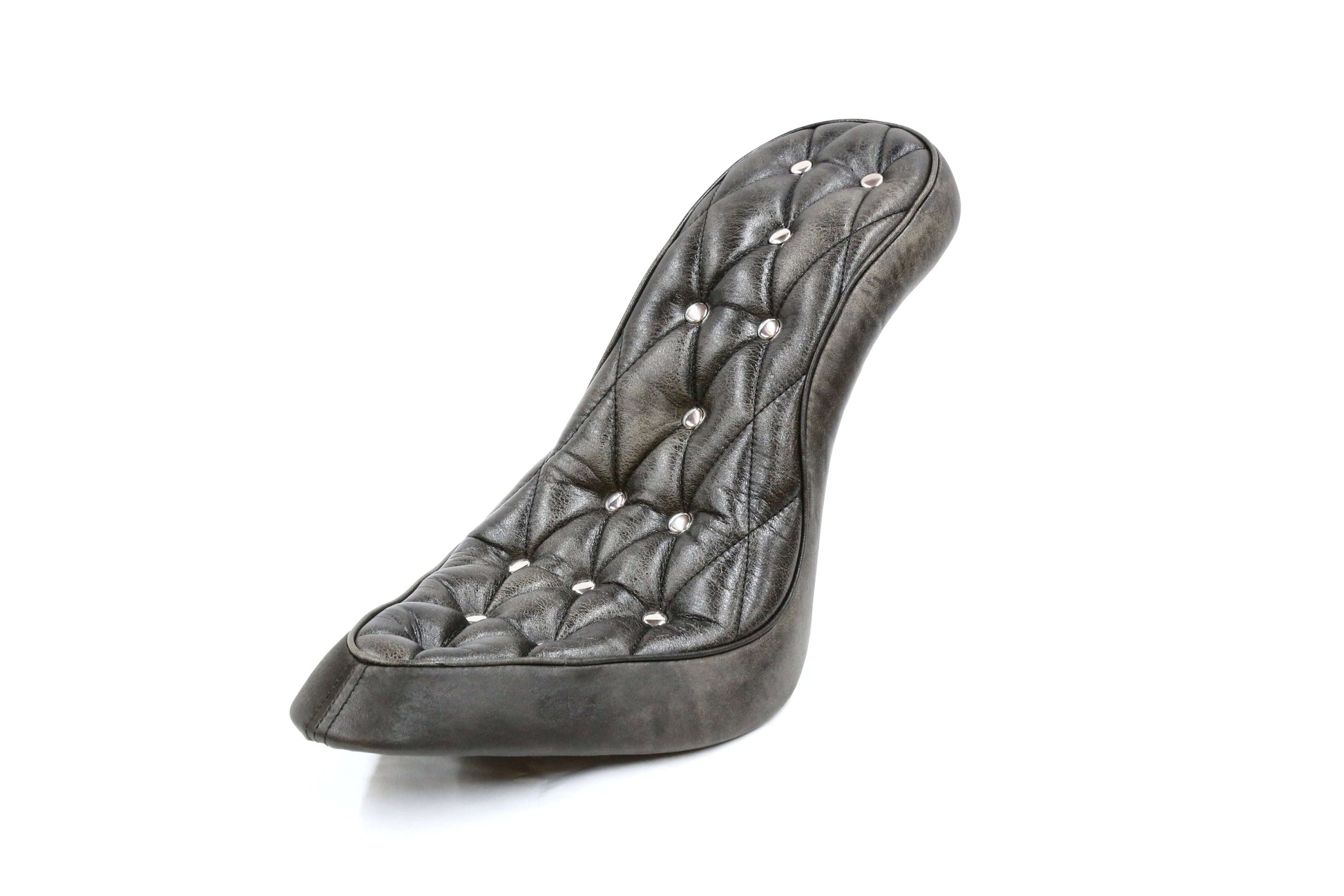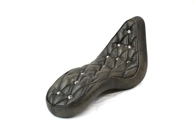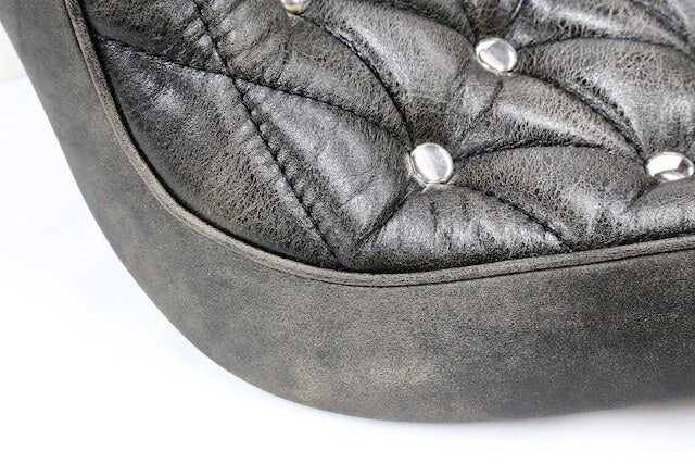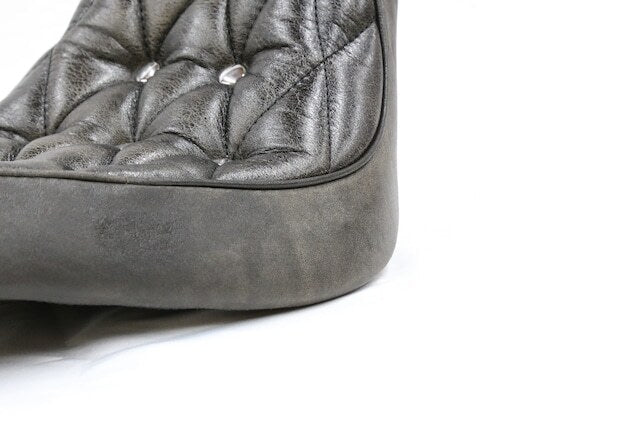 6〜70年代にかけて一世を風靡したCaliforniaのシートメーカーE&L社のボタンタフト・コブラシート。現在は絶版となっているE&Lコブラシートをスーパーリアル・クラックレザーを使用したエイジング・シートで完全再現しました。