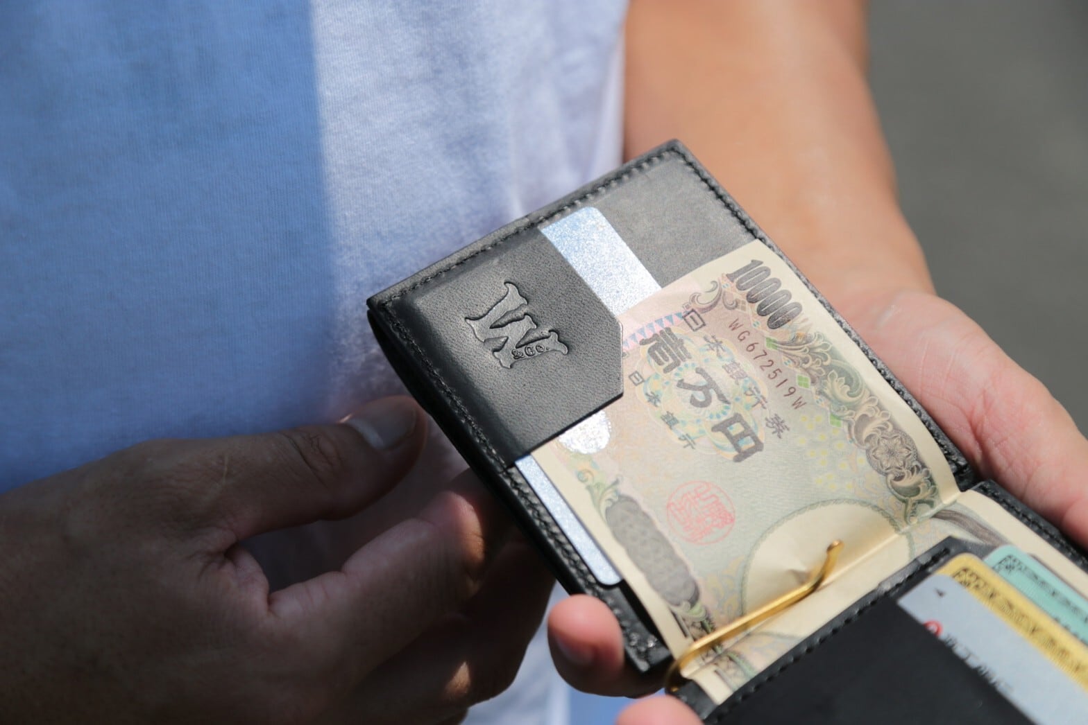マネークリップ方式の札入れと、最低限のカード収納に小銭入れを装備しており、言わば“パスケースに現金が収納できる”機能が付いた物、とゆう通常の財布とは逆の発想で考案されたウォレットです。