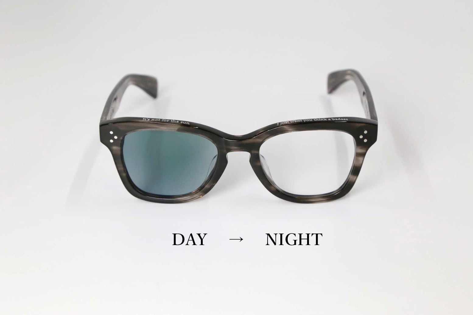 日差しの強い昼間はサングラスとして、夜間は透明レンズのシェードとして使用できます。