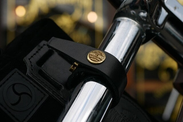 取り付けベルトは自在設計になっており、ライザーやハンドルやフレーム、シッシーバー等の様々な場所に取り付け可能です。