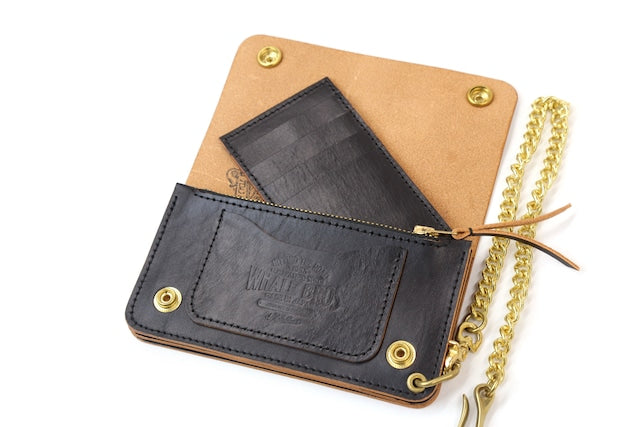 ウォレット本体に加えてチェーンとベルトループも付属し、スタイルと実用性の両方を兼ね備えたセットです。