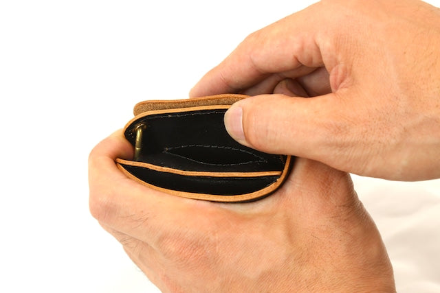 熟練革職人と何度も打ち合わせを重ね、試行錯誤を経て完成。遊び心が詰まった大人の財布を追求しています。