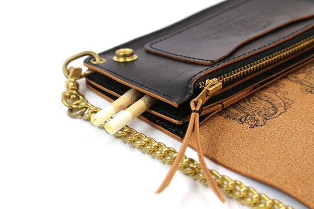さらに財布側面にはシークレットポケットを備え、小物やジョイントなどをこっそり収納できる仕様に。取り出す瞬間には、思わず周囲が驚くような、ちょっとした遊び心を楽しめます。
