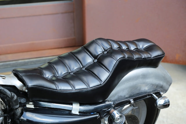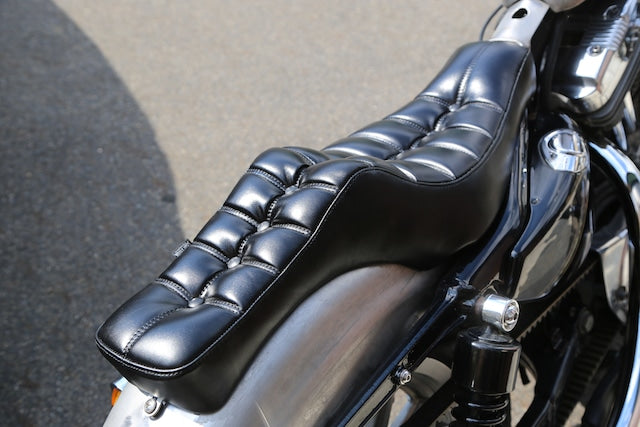 パターンは往年のチョッパーシートのデザインを踏襲した"ボックス&ボタン"になります。7