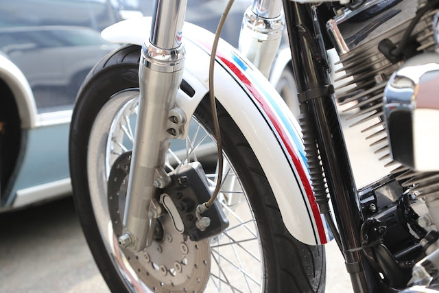 1972年のボートテールのショベルヘッド・初代FXを彷彿とさせるペイントは、もちろんオリジナルペイントです。